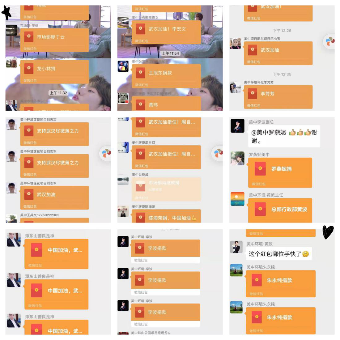 募捐倡議得到了美中環境全體員工的積極響應,沒有儀式,沒有渲染,只有愛心的暖流在涌動;從公司最高管理者到普通員工,從項目部到公司各部門,領導們率先垂范、帶頭捐款;員工們爭先恐后,紛紛伸出愛心之手,10000元,1000元,800元,600元,500元,200元,100元,50元,30元......發出倡議短短兩天,就共募集愛心款31866.8元人民幣!截止至2020年02月9日的募捐仍在繼續著......