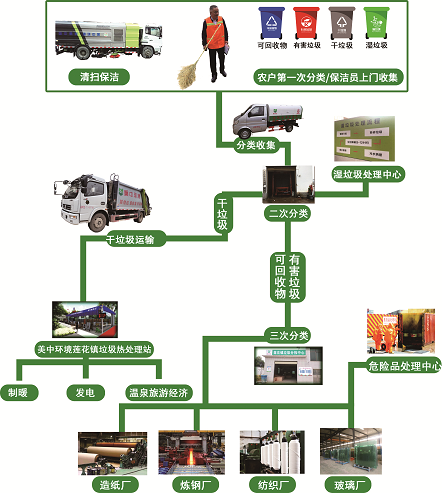 其中蓮花鎮東塘村垃圾熱處理項目是美中公司的全國推廣項目,項目所在地長沙市岳麓區蓮花鎮,全鎮總面積113平方公里,蓮花鎮生活垃圾熱處理中心占地面積約為2800m2,采用具有獨立知識產權、國家領先的熱解冷排無害化處理生活垃圾30噸/天,實現全鎮生活垃圾減量化90%以上,并且很好的實現資源化利用,利用熱處理產生的熱能,提供增值服務,比如向周邊學校、醫院或居民提供熱水,在此修建泉,推動蓮花鎮休閑旅游業的發展。還有長沙縣泉塘街道垃圾分類服務項目,星沙街道,隸屬于湖南省長沙市長沙縣,總面積24.3平方千米,下轄17個社區,有108個小區(含安置區)人口約35萬人,約10.17萬戶。項目服務內容包括通過加強宣傳引導、源頭管控、分類收集、分類運輸、分類處置,實現分類全覆蓋;在已經運營的市級示范社區牛角沖實施垃圾分類示范打造,其余16個社區同步全覆蓋實施;在各投放點定時、定點進行督查指導,參與率要達到100%;設置并建立各類垃圾分類臺賬,進行數據分析,進行積分兌換;垃圾分類運輸分類處置,日產日清。
